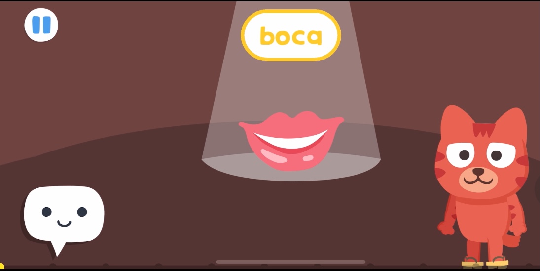 In VoicePlay™-Spielen erscheint eine Sprechblasenfigur auf dem Bildschirm. Wenn das Ohrsymbol angezeigt wird, bist du an der Reihe zu sprechen.