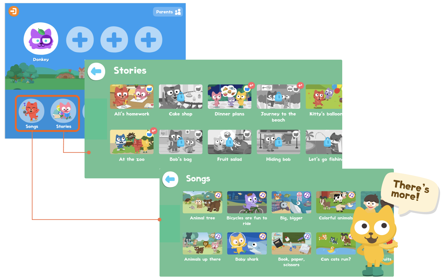 Your child can now jump straight into our library of stories and songs directly from the home screen.
