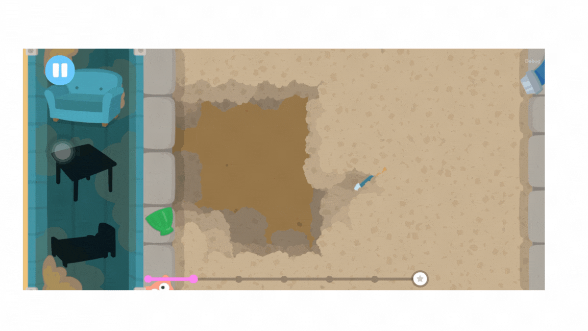 Una de las mecánicas clave en Sandbox es excavar para encontrar palabras representadas por sombras. Mientras deslizas tu dedo por la caja de arena, busca sombras que indiquen palabras y frases ocultas bajo la arena.