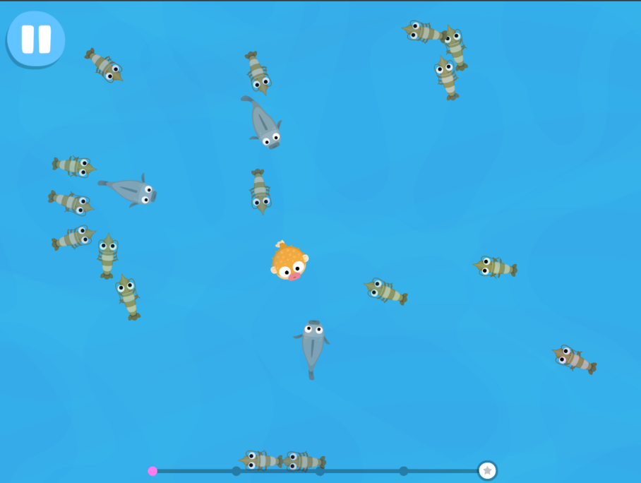 מסוכן במים הפתוחים. אז, המטרה שלנו היא להפוך לדג הכי גדול והכי מהיר באוקיינוס כדי שאף דג אחר לא יוכל להתעמר בנו. אנחנו עושים זאת על-ידי אכילת דגיגים אחרים שקטנים מאיתנו!