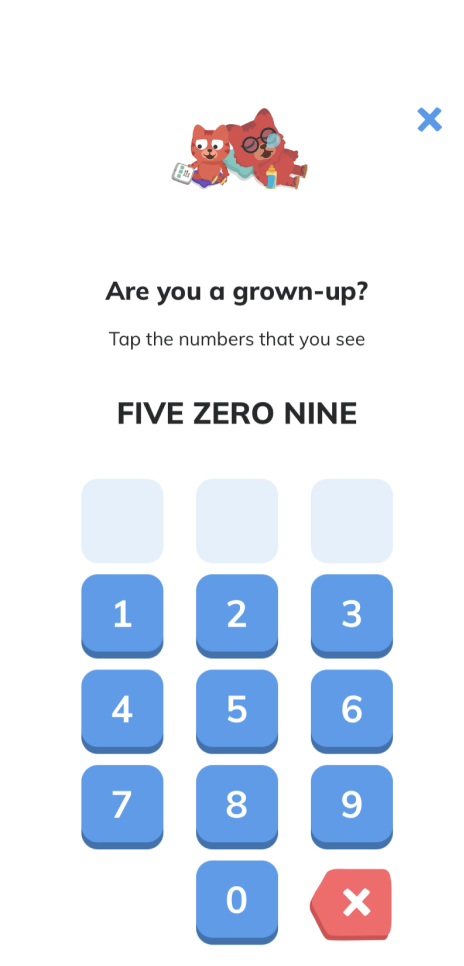 - 画面に表示された数字を順番に入力して年齢確認画面を通過します。例:「509」