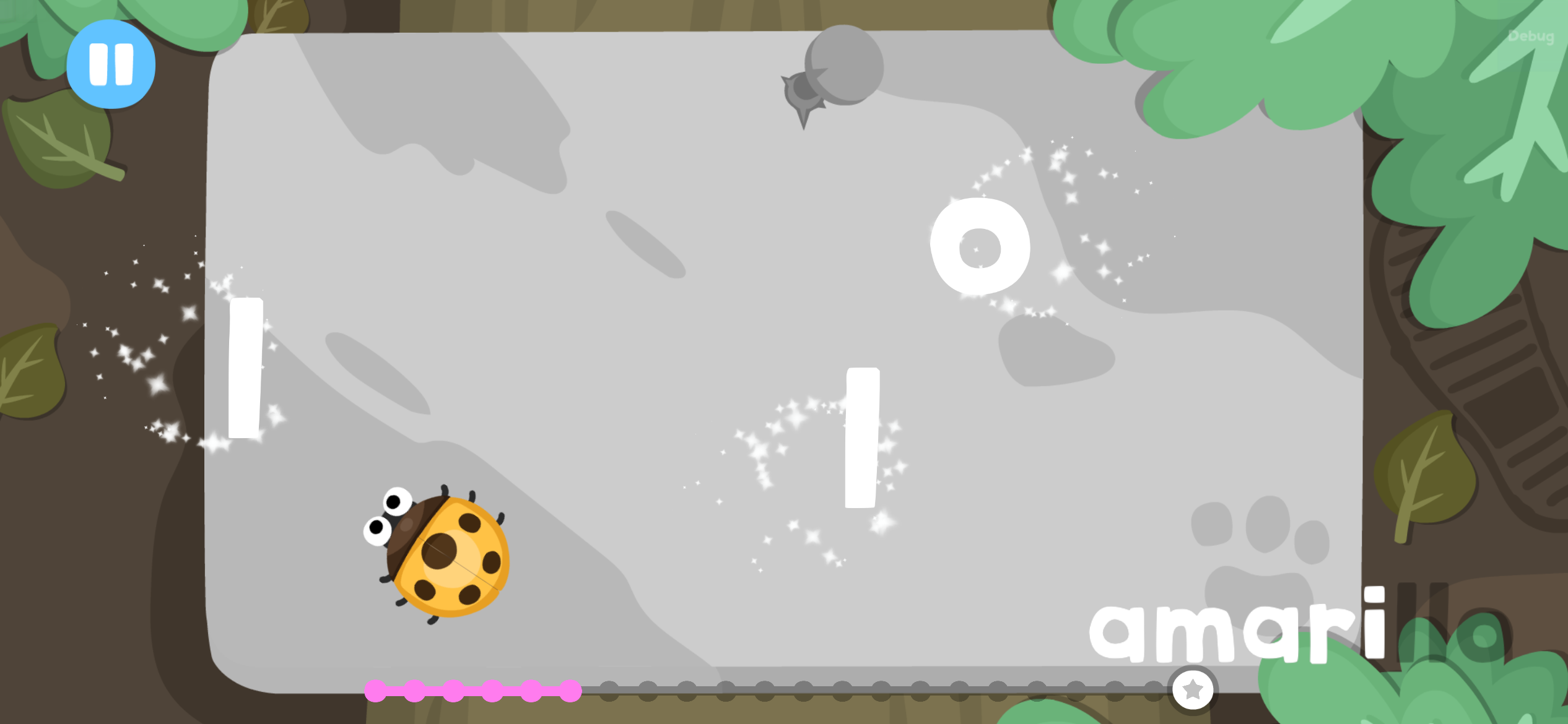 Toque e segure na tela para guiar seu personagem e coletar as letras.