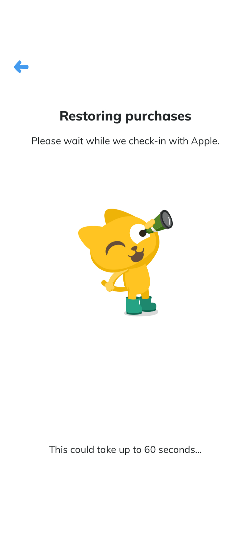 - หากพบการซื้อของคุณ หน้าจอจะแสดง 'Purchase restored'