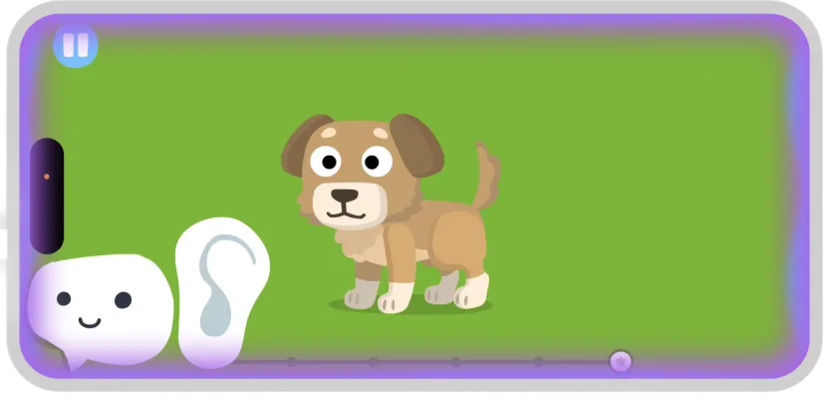 在VoicePlay™游戏中,您会看到屏幕上出现一个语音气泡角色。当耳朵图标显示时,就轮到您说话了。
